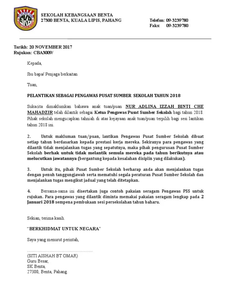 Surat Pelantikan Pengawas Sekolah Rendah Pdf