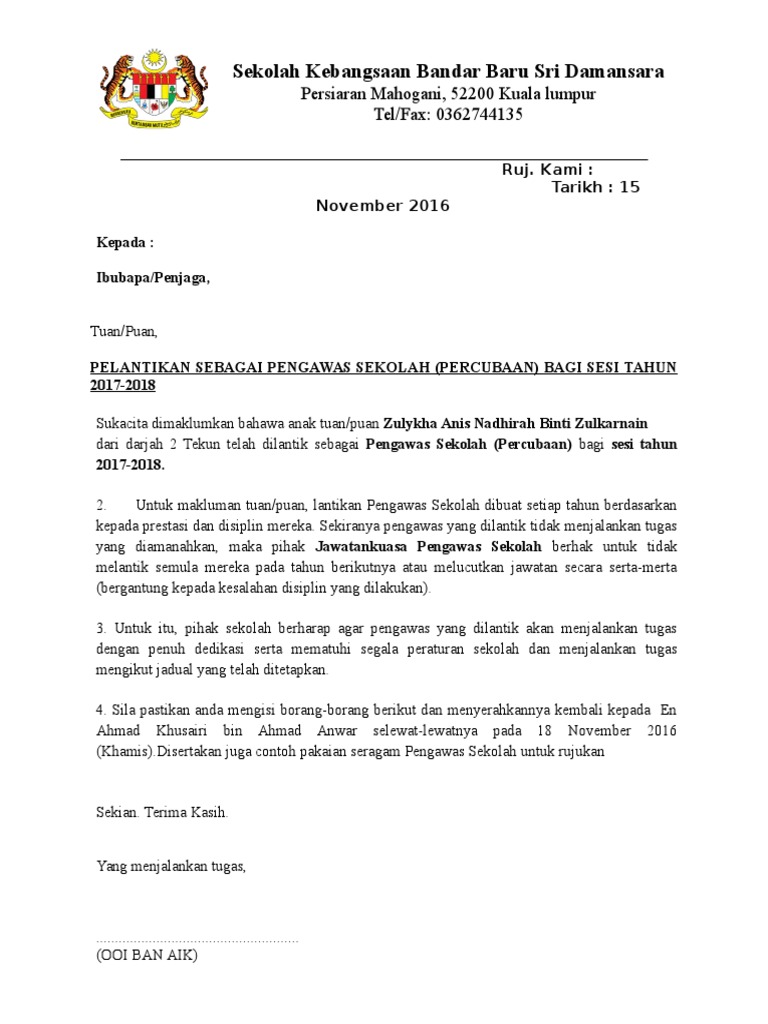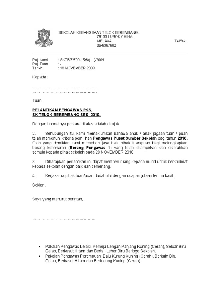 Contoh Surat Lantikan Pengawas Pdf