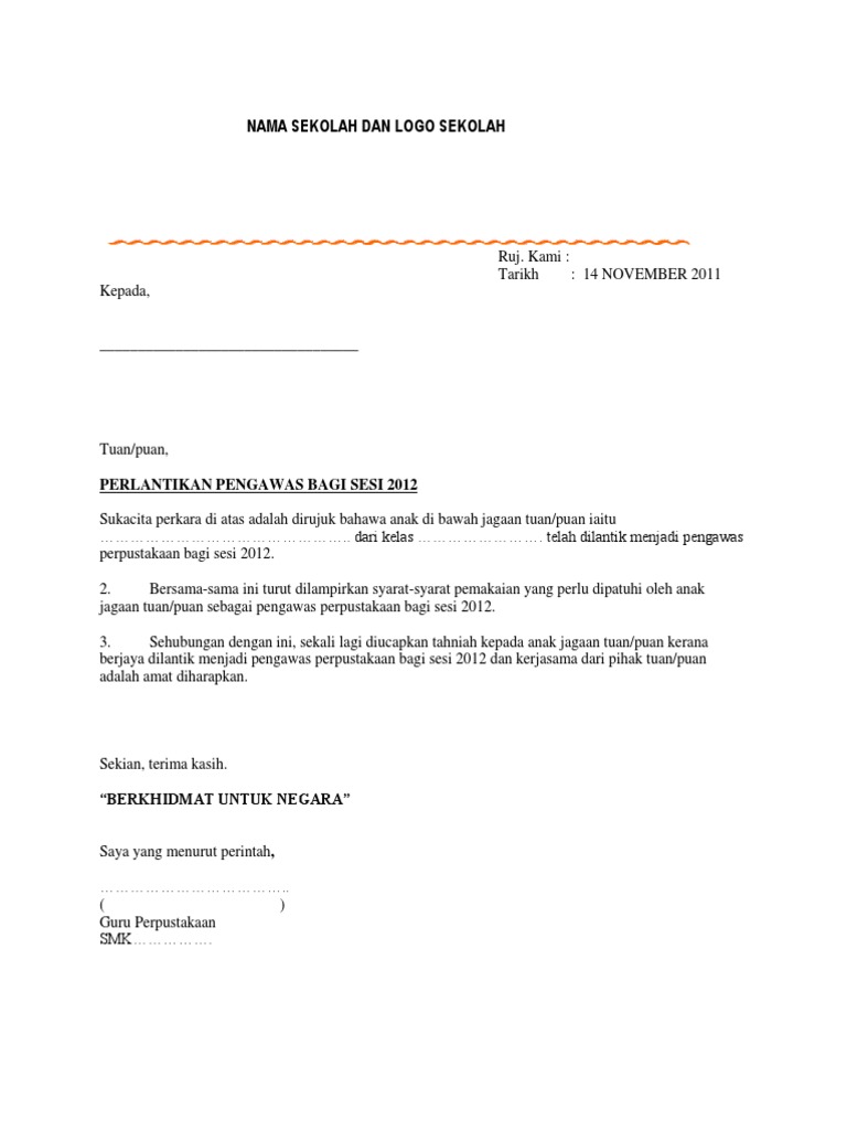 Single Dot Contoh Surat Watikah Pelantikan Pengawas Pusat Sumber