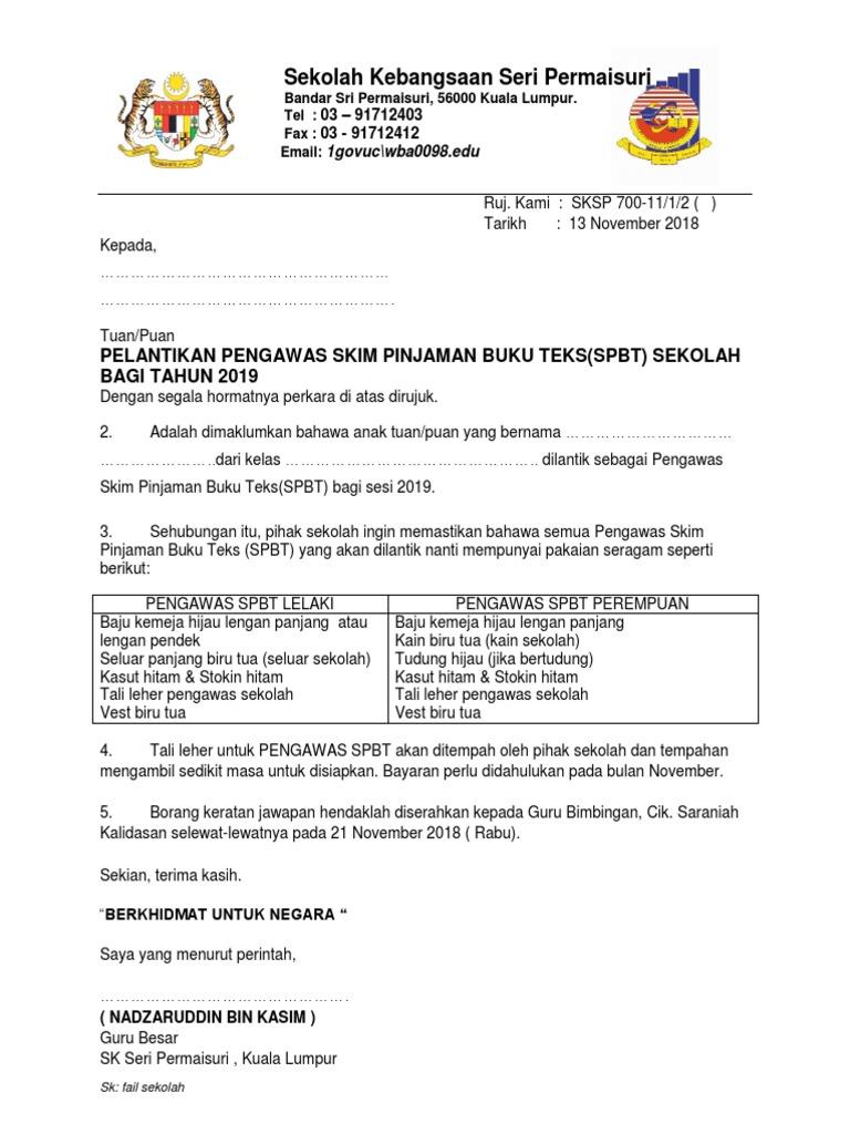Surat Lantikan Pengawas Skbbsd Pdf